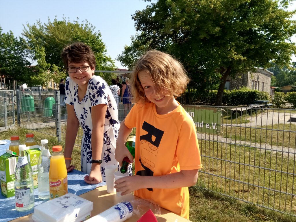 Wie die Tage zuvor herrschten fast tropische Sommertemperaturen. Der Getränkestand des Förderverein mit kostenlosen Erfrischungen und Knabbereien kam deshalb nicht nur bei den Schülern, sondern auch bei den Eltern und den Gästen gut an.